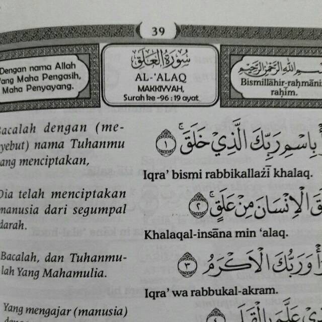 Ayman sowayedi ask allah to make it a key for each one of us to help us recite the quran as it was revealed. Surat al alaq arab dan latin dan terjemah indonesia. Tidakkah dia tahu bahwa allah melihat segala yang dilakukannya? Perkaranya tidak seperti yang disangka oleh abu jahal. Bacalah, dan tuhanmulah yang maha pemurah, 4.