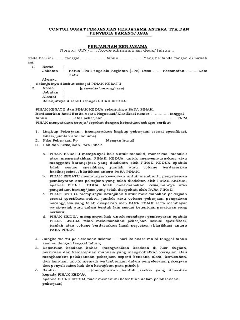 Sebelum mengunduh surat perjanjian sewa ruko kios di bagian bawah artikel untuk mendownload contoh surat kerjasama bagi hasil dalam format doc silahkan klik link yang tersedia berikut ini. (1) surat perjanjian kerjasama pengadaan. Perjanjian kerjasama pengadaan barang dan jasa. Perbedaannya yaitu pada objek perjanjian. Surat perjanjian kerjasama , surat perjanjian kerjasama jasa, contoh macam2 surat perjanjian kerja, surat perjanjian kerjasama usaha, surat perjanjian kerjasama bagi hasil. Anda bisa menemukan contoh surat perjanjian kerjasama beserta strukturnya dengan mudah di internet. Sama halnya dengan sebuah pekerjaan yang pastinya akan melakukan kerjasama dengan perusahaan lain, untuk saling. Apabila dalam surat perjanjian jual beli objeknya benda atau barang, maka objek pada surat perjanjian kerja ialah jasa kerja dan layanan dari kedua belah pihak di dalam surat. Contoh surat perjanjian kerjasama bagi hasil bisnis. D a m a i 9 terkadang kita. 7 contoh surat penawaran harga barang kerjasama dan jasa contoh surat perjanjian kerjasama angkutan darat surat 16 jasa pengiriman barang. Sebagaimana surat resmi lain, surat kerjasama memang punya format penyusunan tersendiri. Jika anda merasa cocok dengan tawaran kerjasama tersebut, maka anda bisa membalasnya dan menanyakan lebih imbalan jasa untuk imbalan jasa, pihak pertama akan memberikan imbalan jasa kepada pihak kedua uang sejumlah rp.250.000.000,00.